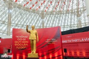Bức tượng Chủ tịch Hồ Chí Minh tại Trung tâm Hội chợ Triển lãm quốc gia (Ảnh: Mạnh Quân).